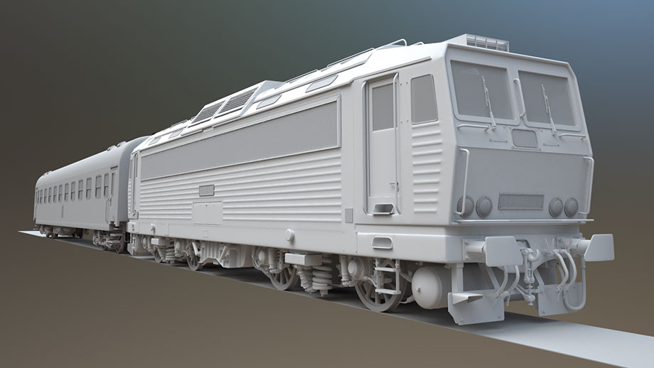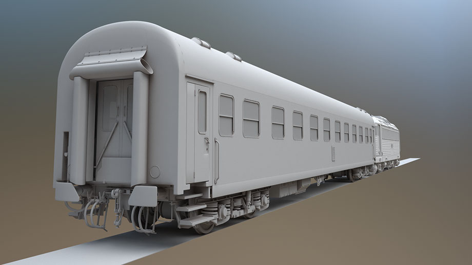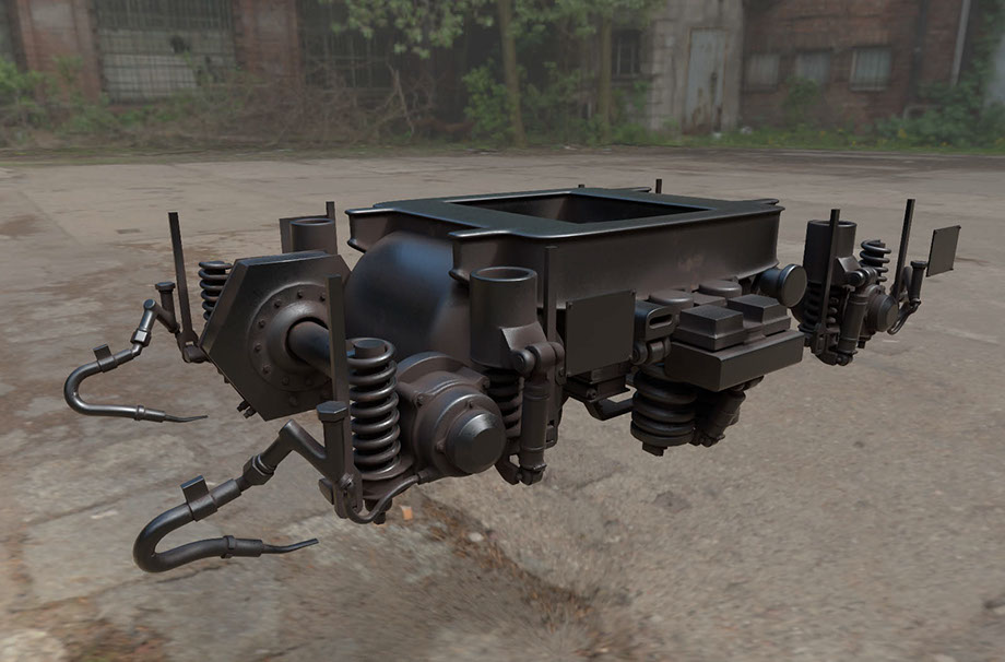 Train model for film "Saxana 2" - texturing the undercarriage. While I did just the model for the film, I am revisiting it to add materials in Substance Painter, and to do some animation with real footage.